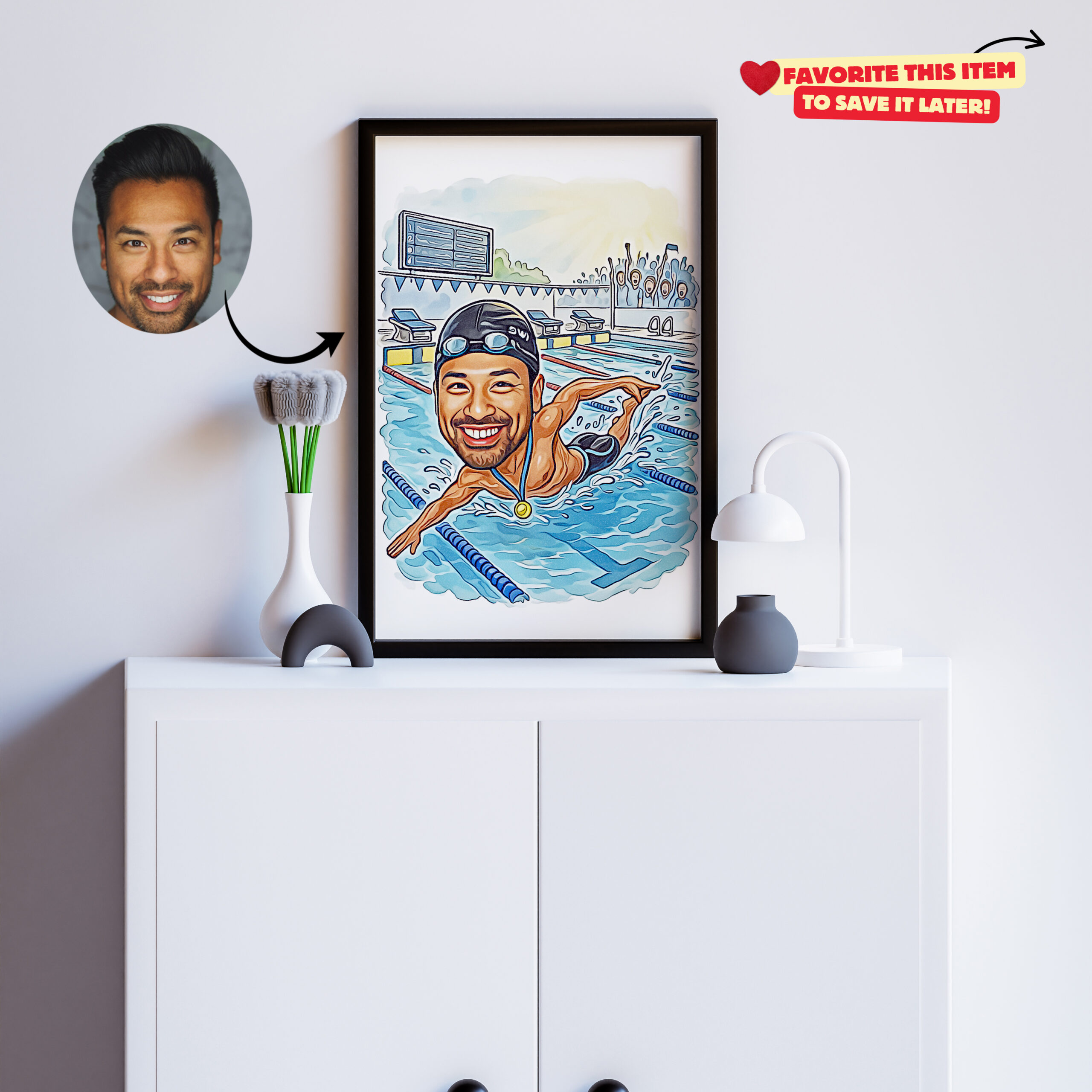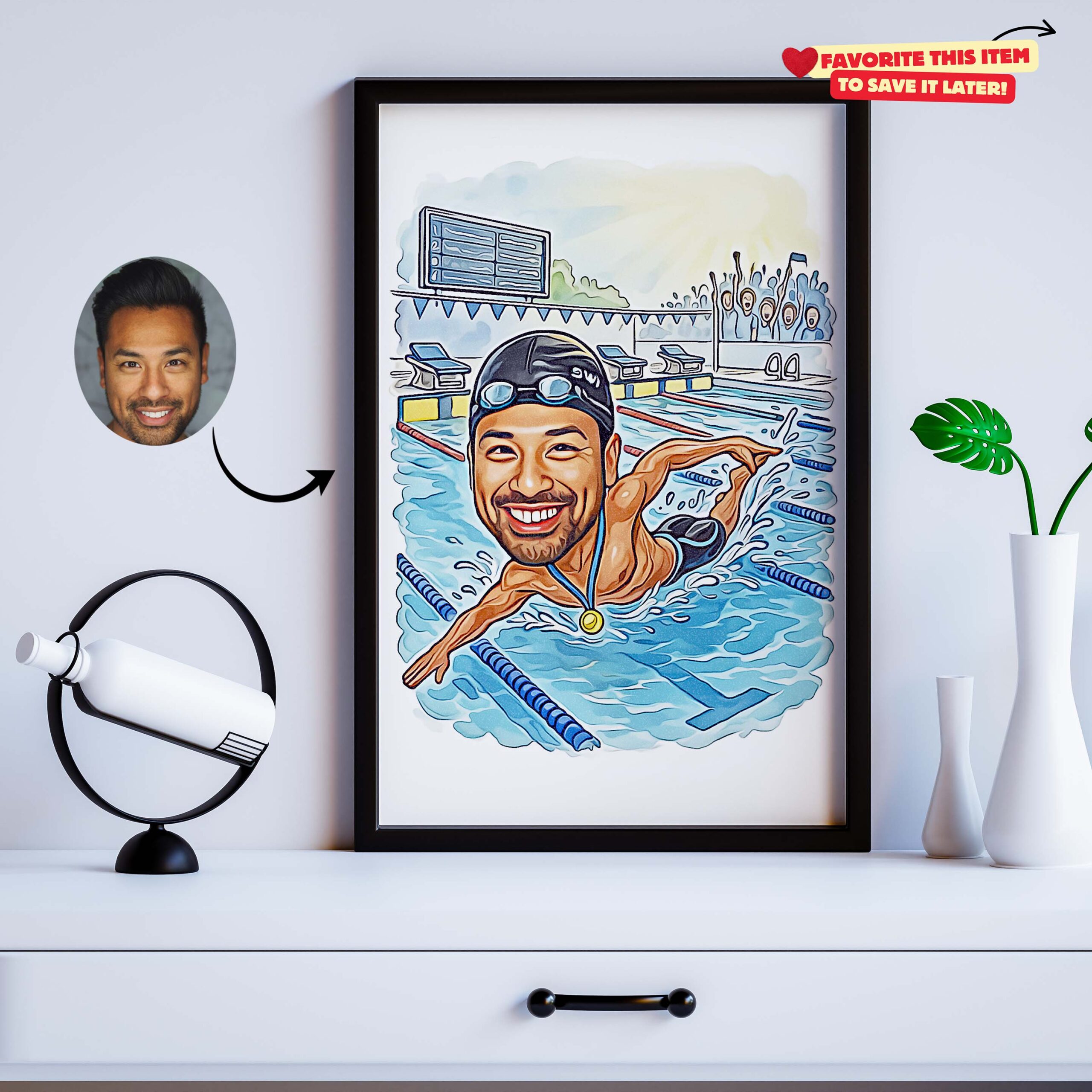 Do not settle for generic trophies or basic store-bought cards. Celebrate the swimmer in your life with a vibrant, action-packed custom swimmer portrait that they will treasure forever. Whether it is a birthday, a graduation, or an end-of-season banquet, this personalized swimming gift is guaranteed to make a massive splash. Upload your photos, choose your favorite framing option, and let us dive into creating your custom sports character design today!