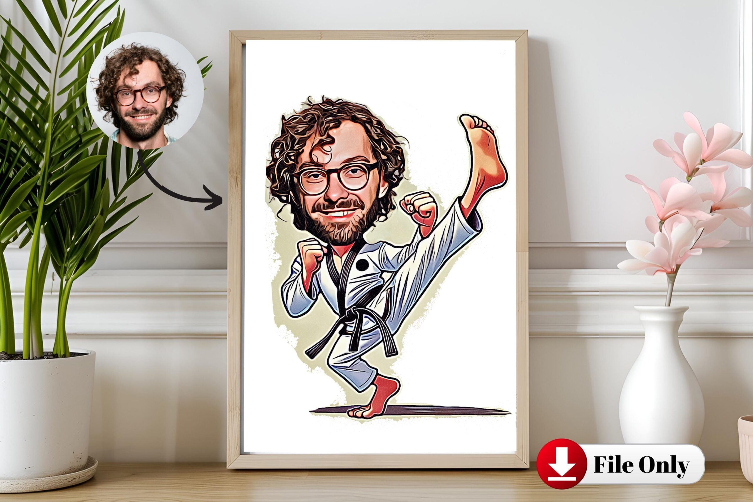 Ready to create an awesome karate portrait? Add to cart and send your photo after checkout. 🥋🎨
